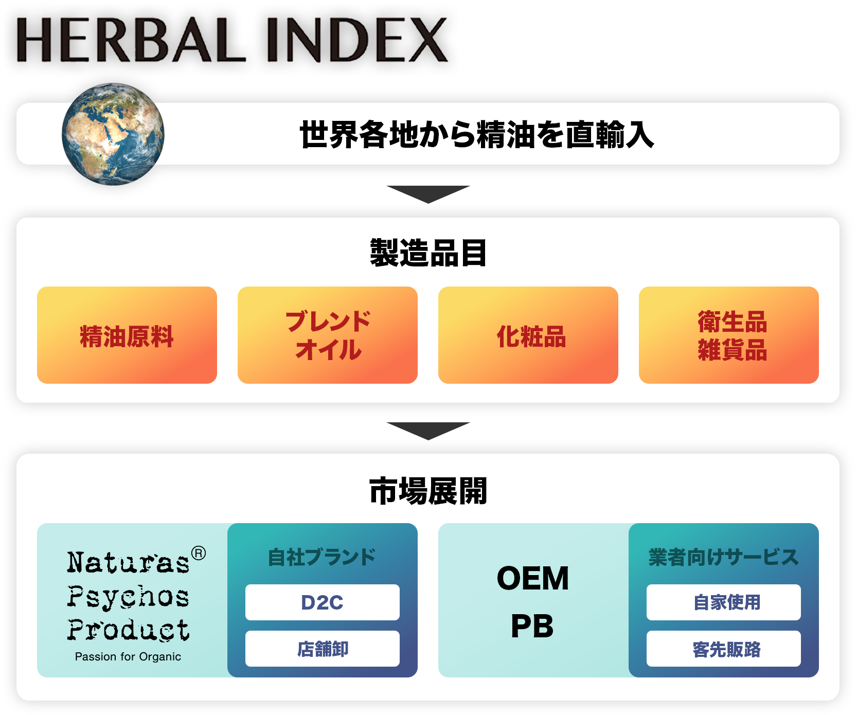 天然素材に一貫したこだわりをもち、オーガニック認定取得製品をはじめ、各種ナチュラル製品を製造販売しています。