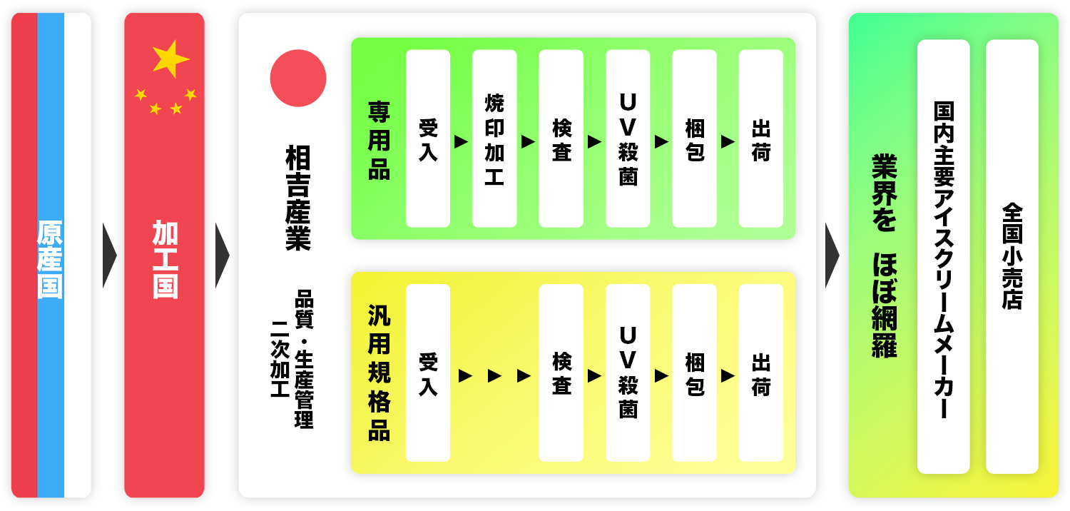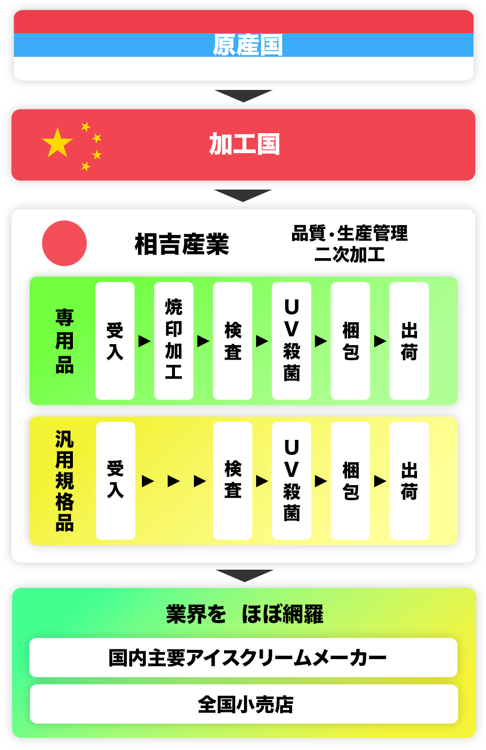 海外のシラカバで作られた氷菓子用の木製スティック、木製スプーンを加工業者から輸入し、国内アイスクリームメーカーなどに販売しています。