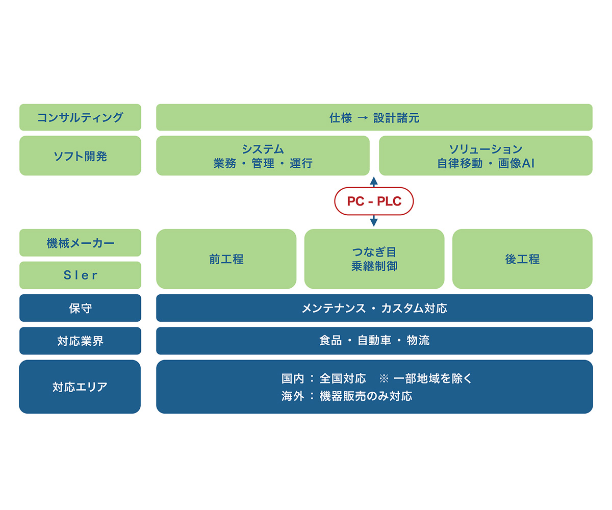 また製品だけに留まらず、DXソリューションのコンサルティングや、DX技術の導入(RFID、Li-ion電池、非接触充電、安全保護回路、上位システム連携、運行管理、外部機器連携など)から、アフターサービスまで、導入・運用をしっかりとサポートいたします。